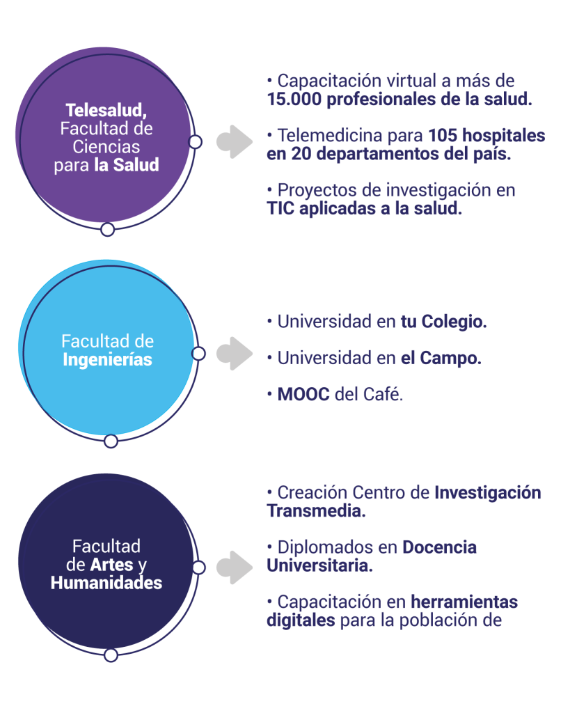 Así mismo todas las Facultades de la universidad y algunas dependencias académico-administrativas han desarrollado experiencias significativas relacionadas con la incorporación de las tecnologías en sus procesos de enseñanza y aprendizaje.